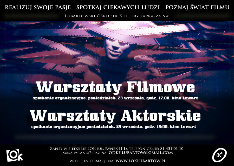 KulturaLubartowski Ośrodek Kultury zaprasza na warsztaty filmowe, warsztaty aktorskie i spotkania Dyskusyjnego Klubu Filmowego.