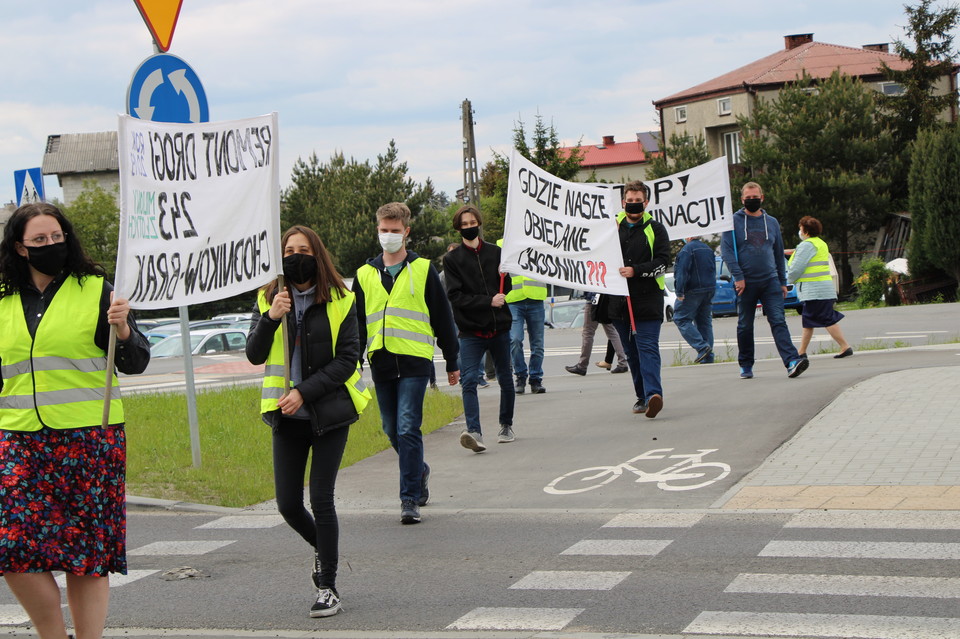 - Uczestniczył w nim burmistrz, zastępca, sekretarz miasta, radna Wiesława Romańska - Serwin, były radny Jerzy Tracz. Z naszej strony było pięć osób. Ustaliliśmy, że miasto wystąpi do województwa z propozycją współpracy w budowie chodnika, wystąpi do Urzędu Marszałkowskiego o warunki techniczne budowy chodnika. Jeśli do 22 czerwca tak się nie stanie, 26 czerwca wznowimy protest - mówi przedstawiciel mieszkańców, który chce zachować anonimowość.