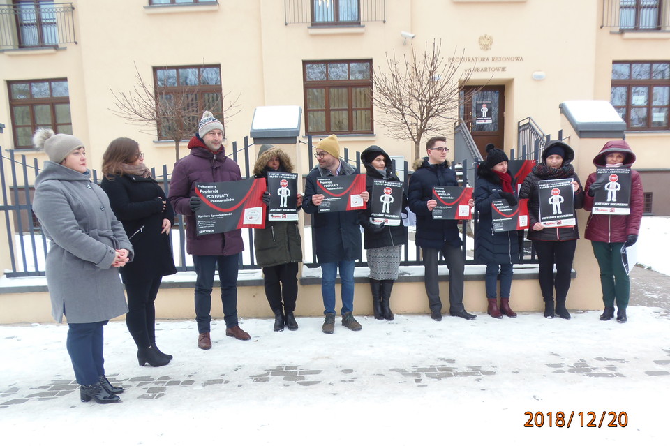 Osoby pracujące po kilkanaście lat otrzymują realnie 1900 zł. Są pracownicy, którzy mają wynagrodzenia mniejsze. Pracownicy prokuratur w całym kraju domagają się podwyżek. Jak mówią uczestnicy protestu, ostanie podwyżki dostali w 2010 r., były to kwoty 30 - 40 zł. Dzisiaj protestowali pracownicy prokuratur w całym okręgu lubelskim. Protest organizują dwa związki - Solidarność i Związek Zawodowy Prokuratorów i Pracowników Prokuratury. Protest pracowników popierają także prokuratorzy, wraz z podwładnymi w proteście wzięła udział szefowa lubartowskiej prokuratury, Katarzyna Świerszcz - Dobosz.