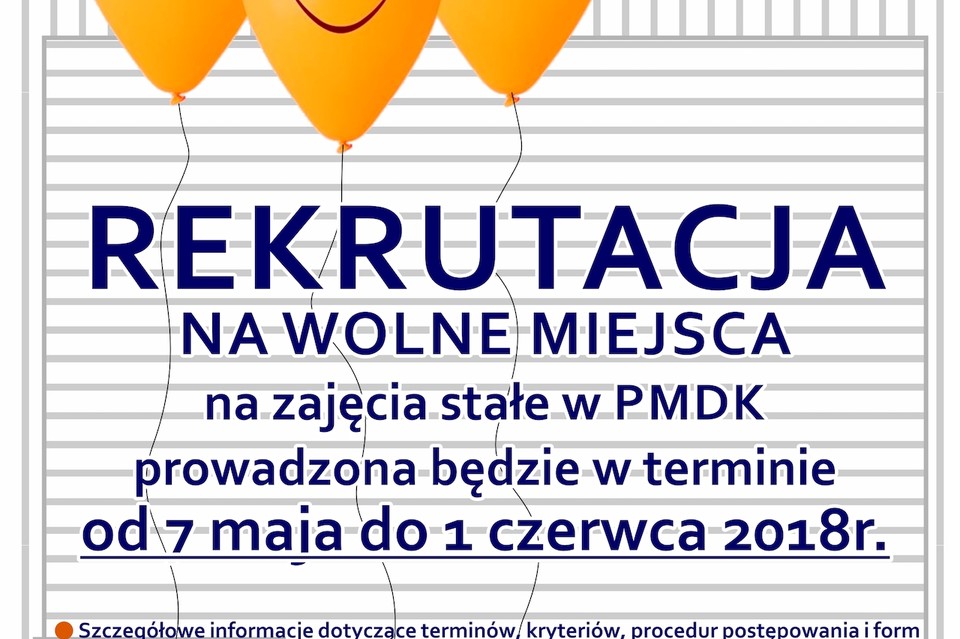 Wszystkim zainteresowanym zapisaniem dzieci na zajęcia przypominamy, że PMDK jest placówką wychowania pozaszkolnego, w której oprócz zajęć stałych prowadzona jest działalność wychowawcza i animacyjna. Dążymy do tego, aby nasi wychowankowie w przyszłości byli wartościowymi, dobrymi ludźmi i świadomymi odbiorcami kultury. Oznacza to, że każdy uczestnik zajęć stałych w PMDK będzie miał okazję wzięcia udziału w imprezach artystycznych - jako wykonawca i widz, weźmie udział konkursach oraz wycieczkach. Będzie to wymagało czasami poświęcenia czasu i dodatkowego zaangażowania, ale te niezwykłe wydarzenia znacząco wpływają na jakość i skuteczność edukacji i wychowania w PMDK.