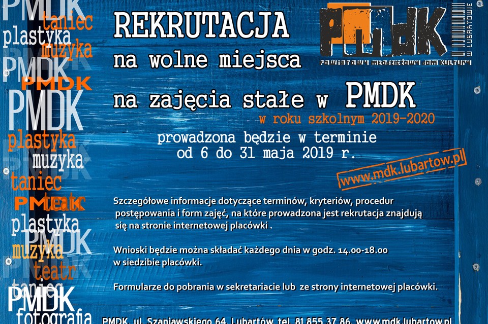 Wniosek i inne dokumenty dotyczące rekrutacji dna zajęcia w PMDK znajdują się na stronie internetowej: