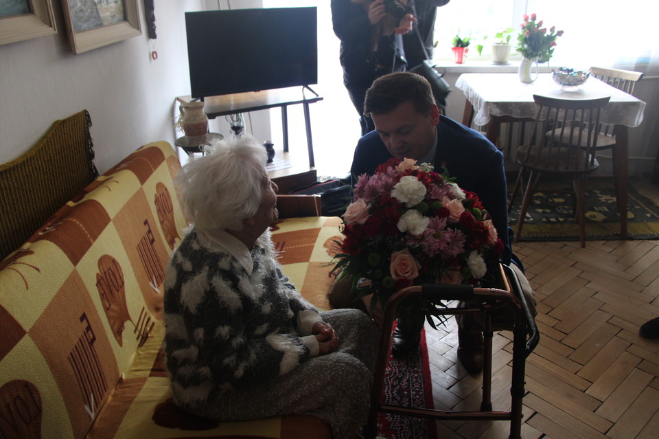 Jubilatkę odwiedził burmistrz Krzysztof Paśnik z naczelnikiem wydziału promocji Arturem Kuśmierzakiem i dyrektor MOPS Marzena Jedut. Burmistrz odczytał list od premiera Mateusza Morawieckiego. Pani Wanda otrzymała też gratulacje od przedstawicielek ZUS.