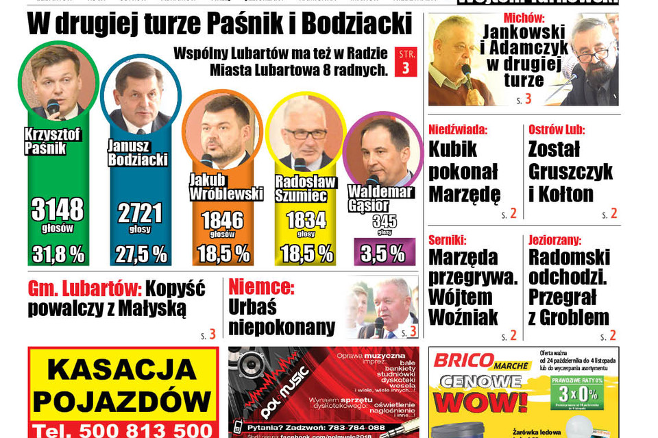 Kandydatem na radnego, który zdobył największą ilość głosów jest Jacek Tomasiak - poparło go 382 wyborców. Drugie miejsce prawdopodobnie należy do Grzegorza Gregorowicza (300 głosów).