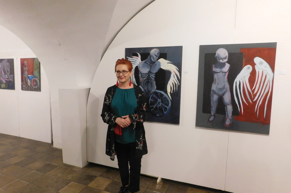 Frapujące obrazy, mogą przypominać senne wizje (nierzadko z nocnych koszmarów). Są też jak najbardziej wpisane w codzienność. Rowerowe koła, a może fragmenty inwalidzkiego wózka, którym porusza się mocarz ze skrzydłami? Pozorna sprzeczność zdaje nieść ze sobą ukrytą treść.