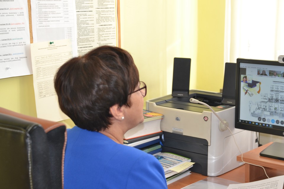 Tradycyjnie wszystkich zebranych powitała pani dyrektor Anna Wójtowicz- ale tym razem ze swojego gabinetu, sprzed ekranu komputera. Absolwenci bili zalogowani do spotkania na platformie, nad pracą której czuwał nauczyciel informatycznych przedmiotów zawodowych, pan Jakub Duba. Po małym podsumowaniu nauki w ostatnich 3 lub 4 latach i kilku ciepłych słowach skierowanych do tegorocznych maturzystów pani dyrektor oddała głos pani Staroście Ewie Zybale. Następnie zabrały głos: w imieniu maturzystów Karolina Pszczoła (III D), w imieniu wychowawców pani Sylwia Kubik- wychowawca kl. IV T oraz Martyna Tomasiak, jako przedstawicielka Samorządu Uczniowskiego. Wszyscy życzyli uczestniczącym on-line absolwentom połamania piór na maturze i spokojnych i zdrowych wakacji. Następnie przyszedł czas na dyplomy, nagrody i podziękowania. W tej części pan dyrektor Zbigniew Sajda wyliczył największe sukcesy szkoły i pogratulował osiągnięć uczniom klas maturalnych. Następnie wymienił nazwiska uczniów nagrodzonych upominkami książkowymi od Rady Rodziców za osiągnięcia w nauce (21 świadectw z wyróżnieniem), 100% frekwencję, za sukcesy w olimpiadach, konkursach i zawodach sportowych. Nagrodzono również uczniów za kreowanie pozytywnego wizerunku szkoły w środowisku lokalnym poprzez udział w wydarzeniach artystycznych, pracę w Samorządzie Szkolnym, radiowęźle, poczcie sztandarowym oraz w Szkolnym Klubie Wolontariusza. Oczywiście symboliczne wręczenie nagród odbyło się wirtualnie. Dyplomy, podziękowania i nagrody książkowe fizycznie czekają na uczniów w szkole. Będą one odebrane osobiście, jak tylko będzie to możliwe.