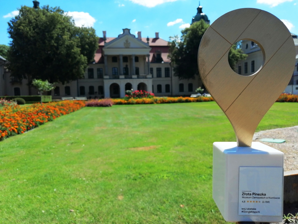 Wyróżnienie zostało przyznane z okazji 15 - lecia Google Maps. Google przyznaje Złote Pinezki – wyróżnienie dla najbardziej docenionych przez użytkowników Map Google atrakcji turystycznych w każdym z województw. W województwie lubelskim nagrodę otrzymało Muzeum Zamoyskich w Kozłówce. Dzięki opiniom użytkowników Map, Google wyłonił jedno najlepiej oceniane miejsce w każdym z 16 województw, które otrzyma statuetkę Złotej Pinezki. Muzeum Zamoyskich w Kozłówce obecnie ma już ponad 4 tysiące opinii na Mapach Google, a średnia ocen wynosi 4,7.