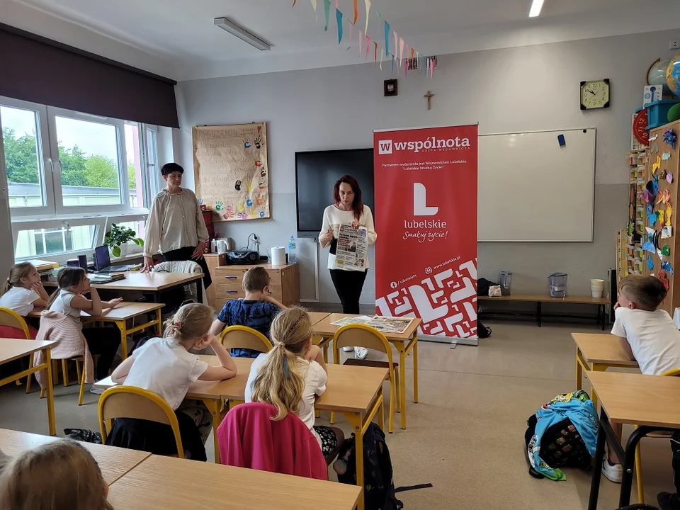 Dziś odwiedziliśmy uczniów drugiej klasy Szkoły Podstawowej nr 1 w Lubartowie, gdzie mogliśmy przez chwilę poprowadzić lekcję języka polskiego. Optymizmem napawa duża wiedza ogólna młodzieży, która zaskoczyła nas dobrą znajomością działania mediów. Rozmawialiśmy zarówno o zawodzie dziennikarza, procesie wydawania gazety oraz cechach, jakie pownien wykazywać dziennikarz informacyjny.