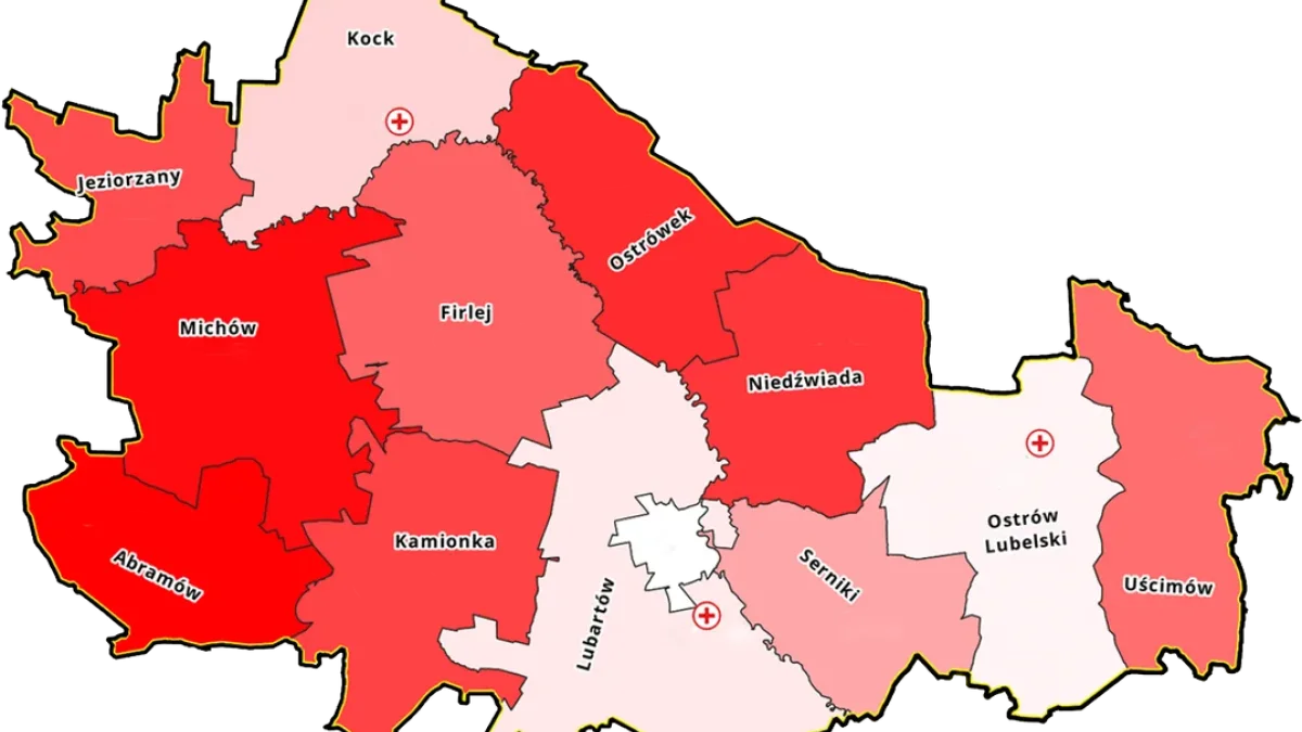 Analizując mapę czasu dotarcia na miejsce zdarzenia w gminach powiatu za rok 2023 wydaje się, że istnieje także potrzeba na lokalizację jeszcze jednej podstacji pogotowia, tak by zmniejszyć czas oczekiwania na karetkę w gminie Niedźwiada i Ostrówek. Wszak czas niezbędny do ratowania zdrowia, a i również życia ludzkiego jest bezcenny. Warto zatem podjąć starania o zwiększenie ilości karetek w powiecie oraz monitować o to wojewodę, gdyż zgodnie z art. 24 ustawy o PRM, to wojewoda podejmuje działania organizacyjne zmierzające do zapewnienia parametrów czasu dotarcia na miejsce zdarzenia dla zespołu ratownictwa medycznego od chwili przyjęcia zgłoszenia przez dyspozytora medycznego.