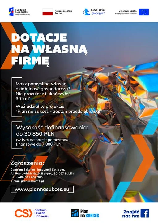 Szczegółowe informacje oraz dokumenty rekrutacyjne znajdują się na stronie projektu www.plannasukces.eu w zakładce DOKUMENTY.