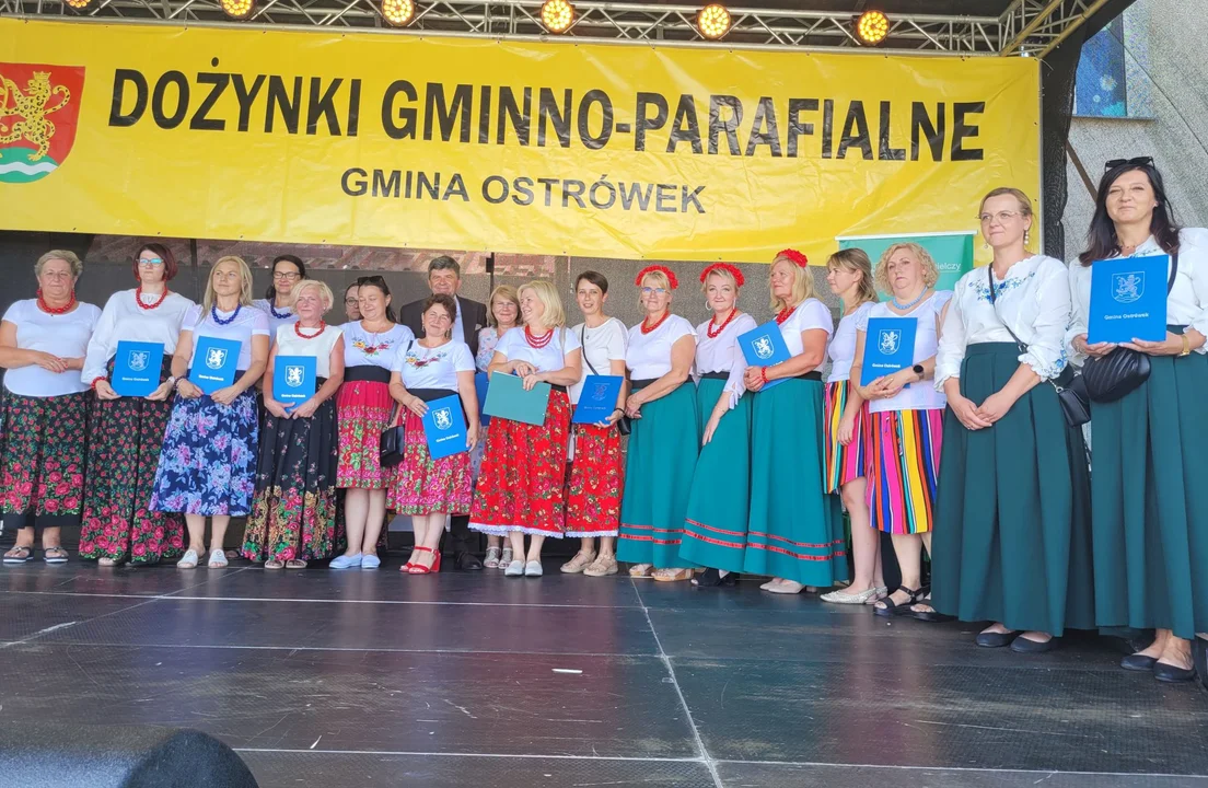 Uroczystości dożynkowe tradycyjnie rozpoczęły się od mszy świętej, którą odprawił proboszcz parafii Henryk Zdybel. Potem barwny korowód ze starostami dożynek na czele czyli panią Barbarą Banaś i Mariuszem Misztalem przemaszerował na plac przy szkole podstawowej w Ostrówku.