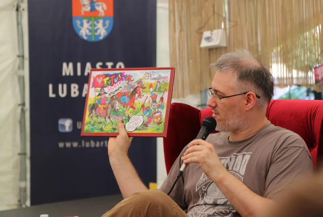 Mówił też o pracy tłumacza komiksów i o komiksach historycznych, n.p. o głośnym komiksie "Maus".