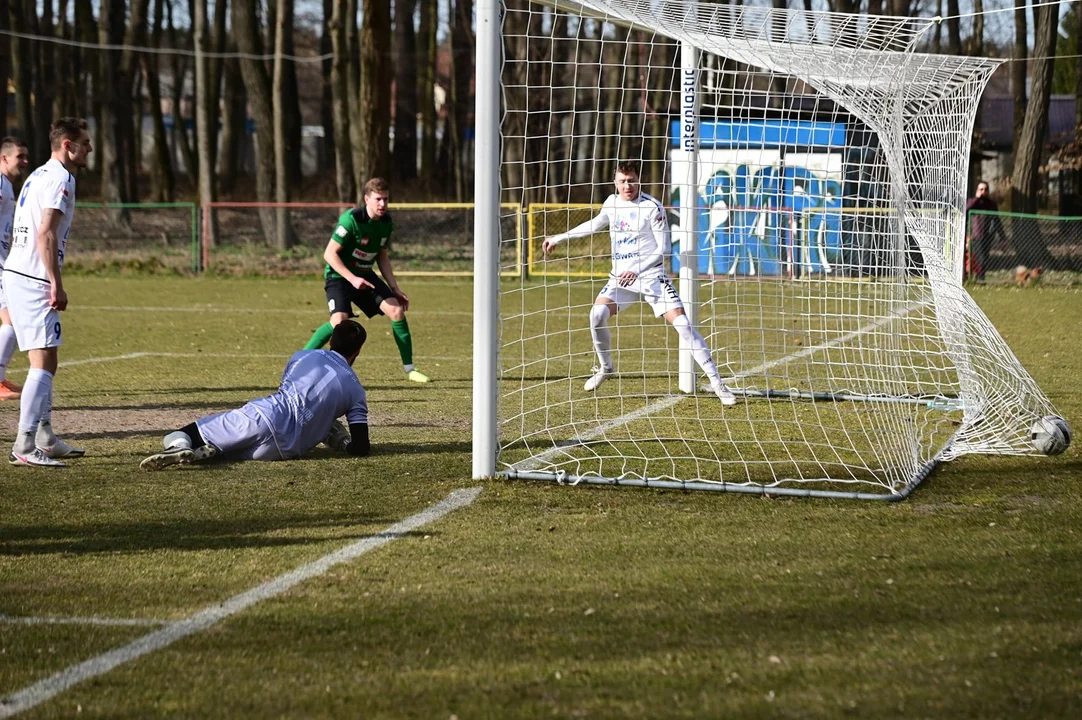 Po niespełna 120 sekundach biało-niebiescy cieszyli się z prowadzenia. Po rzucie rożnym piłka przeszła wszystkich zawodników i zamykający akcję Bartłomiej Koneczny - zawodnik pozyskany z Opolanina Opole Lubelskie znalazł się tam, gdyż trzeba i trafił na 0:1. Radość trwała krótko. Już w 29 minucie Miłosz Kutyła okazał się najsprytniejszy i wyrównał.