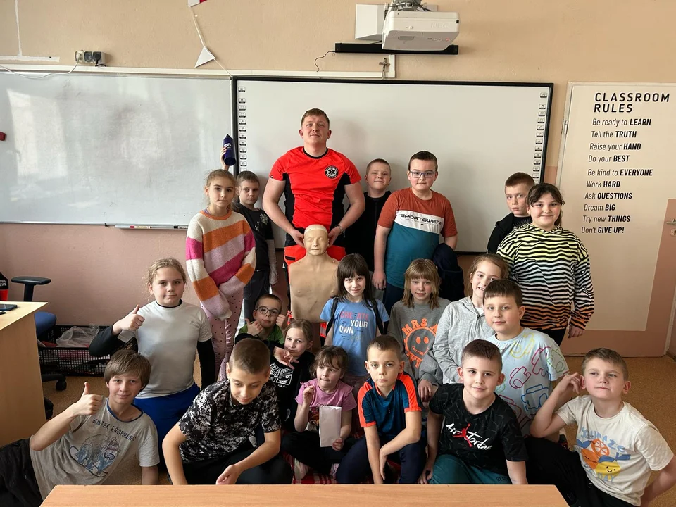 - Warsztaty udzielania pierwszej pomocy* prowadzone przez Jana Jemielniaka, które nauczyły dzieci, jak ważne jest bezpieczeństwo.