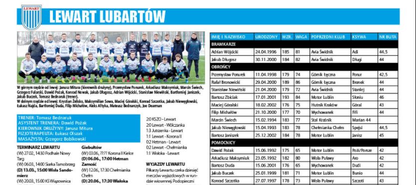 W aktualnym wydaniu skład, transfery, ciekawostki o Lewarcie oraz wywiad z trenerem Tomaszem Bednarukiem