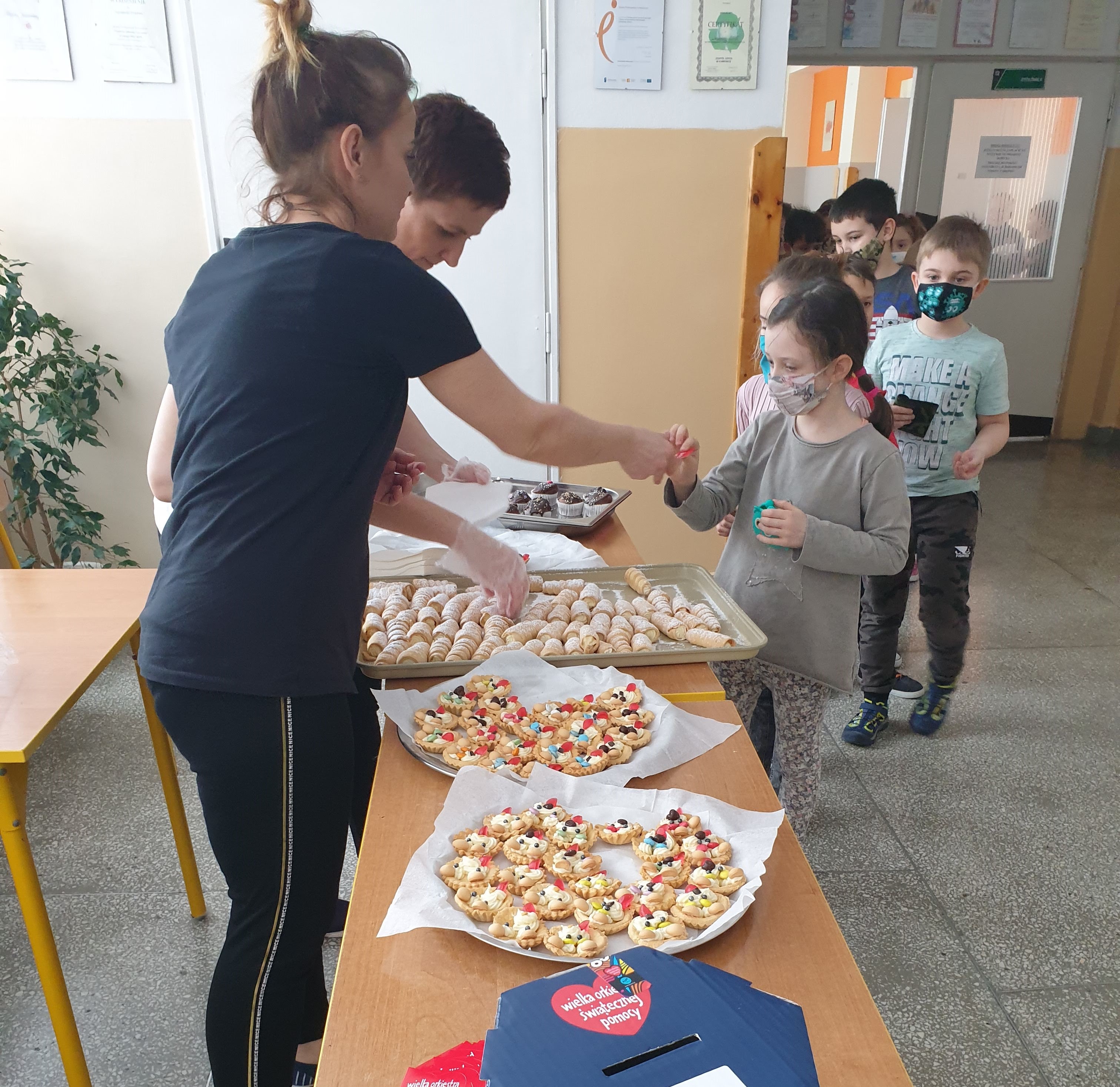 Dla uczniów klas 0-III został zorganizowany kiermasz wyrobów cukierniczych przygotowanych przez uzdolnione Panie kucharki, a w poszczególnych klasach kreatywni uczniowie pod opieką wychowawczyń tworzyli plakaty promujące ideę dobroczynności.