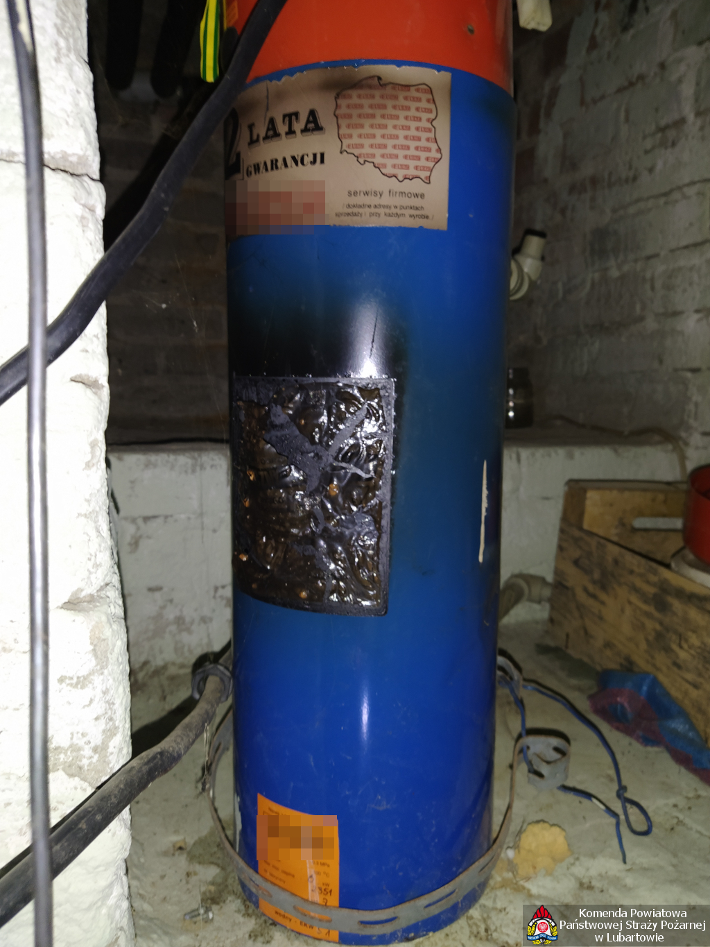 Awaria podgrzewacza, zadymienie w piwnicy Krępie