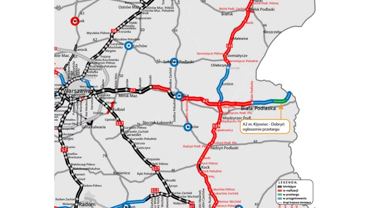 W toku jest umowa na wykonanie projektu budowy 32,3 km autostrady A2 od węzła Biała Podlaska do przejścia granicznego w Kukurykach, wraz z uzyskaniem decyzji ZRID. Zadanie podzielone jest na trzy odcinki:
