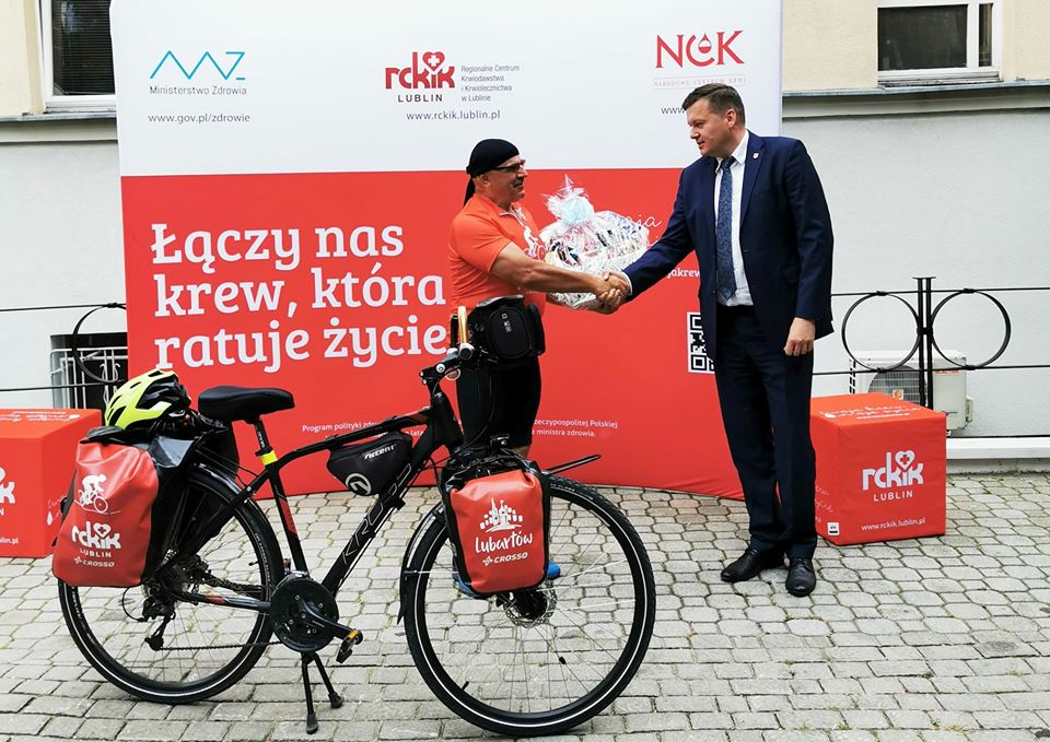 Janusz Kobyłka wyruszył z Lublina 3 lipca. We współpracy z Regionalnym Centrum Krwiodawstwa i Krwiolecznictwa w Lublinie propagował honorowe oddawanie krwi.