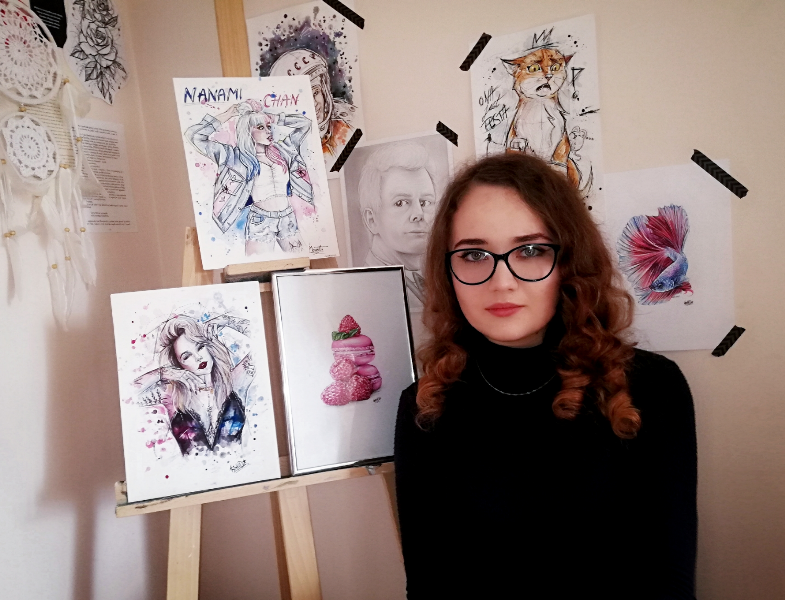 Klaudia Kęska jest uczennicą klasy pierwszej Technikum Zawodowego kształcącego w zawodzie technik ekonomista. Jej pasją jest rysunek odręczny, a szkicownik stał się jej nieodłącznym towarzyszem już od najmłodszych lat. W swoich pracach Klaudia najchętniej posługuję się techniką malarstwa akwarelowego oraz rysunku ołówkiem. Tematy jej prac związane są najczęściej z postacią ludzką, portretem, chociaż rysunek pejzażowy też nie jest jej obcy.