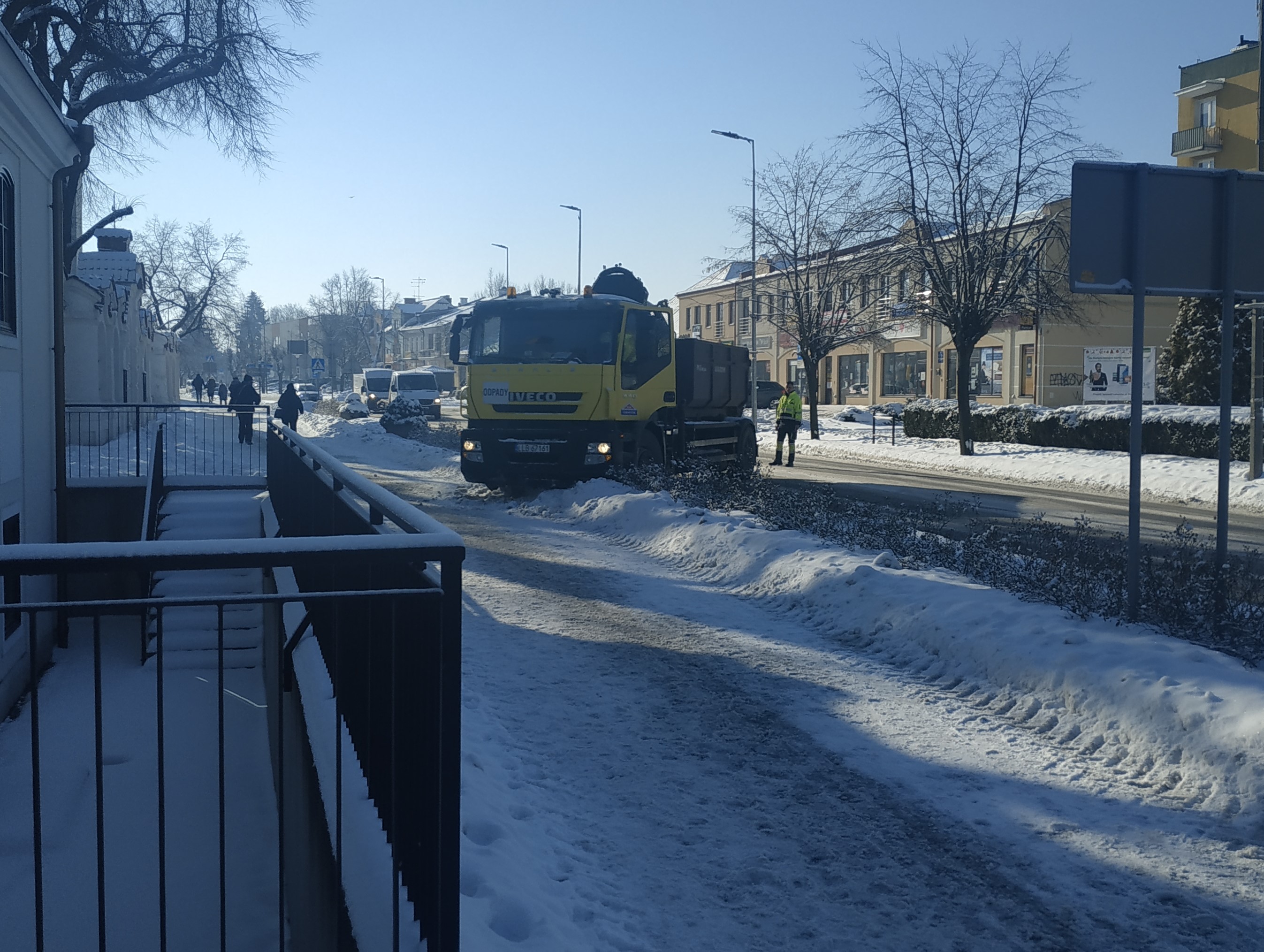- Samochód dostawczy wpadł w poślizg, zjechał na przeciwległy pas naprzeciwko ciężarówki, której kierowca ratując się przed zderzeniem zjechał na chodnik. Minął o metr przechodnia, ale nikomu nic się nie stało - reacjonuje świadek.