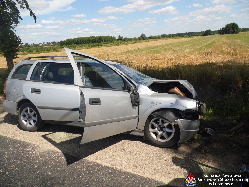 Do zdarzenia doszło w niedzielę około godz. 14. Opel uderzył w drzewo w Woli Sernickiej. Kierowca samochodu opuścił go dzięki pomocy świadka. Na miejsce zdarzenia przybyły zastępy JRG Lubartów i OSP Nowa Wola, służby medyczne. Kierowcę zabrał do szpitala śmigłowiec Lotniczego Pogotowia Ratunkowego. Działania straży pożarnej polegały na udzieleniu pierwszej pomocy poszkodowanemu, odłączeniu instalacji elektrycznej i gazowej w pojeździe, zabezpieczeniu miejsca lądowania śmigłowca.
