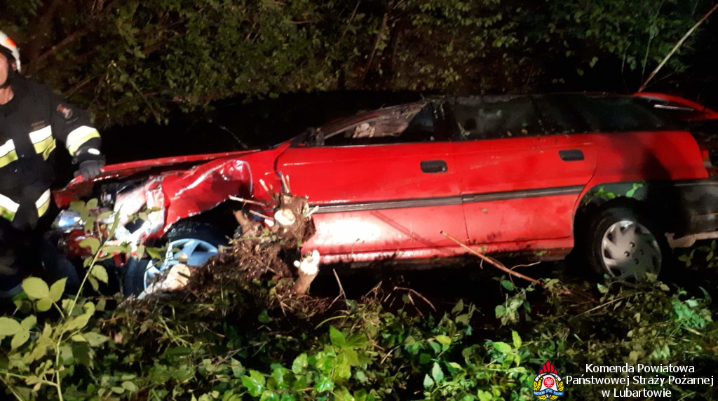 Opel Astra zjechał z drogi do przydrożnego rowu. Pojazd leżał na dachu, częściowo zanurzony w wodzie. Z informacji uzyskanych od osób postronnych wynikało, że autem podróżowało dwóch mężczyzn. W chwili przybycia na miejsce zastępów z Jednostki Ratowniczo-Gaśniczej, jeden z mężczyzn znajdował się na zewnątrz samochodu, poruszał się o własnych siłach. Druga z osób podróżujących Oplem uwięziona była wewnątrz pojazdu. Mężczyzna znajdował się na miejscu kierowcy, z głową zanurzoną w wodzie - nie dawał żadnych oznak życia.
