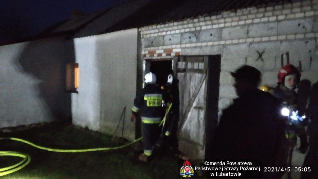 Straż pożarna gasiła pożar wodą, po ugaszeniu ognia przystąpiono do przerzucania i przelewania nagromadzonego i nadpalonego opału. Zdemontowane zostało nadpalone poszycie dachu. W akcji gaśniczej uczestniczyły 2 zastępy z KP PSP w Lubartowie, 1 zastęp z OSP w Ostrówku i 1 zastęp OSP w Dębicy.