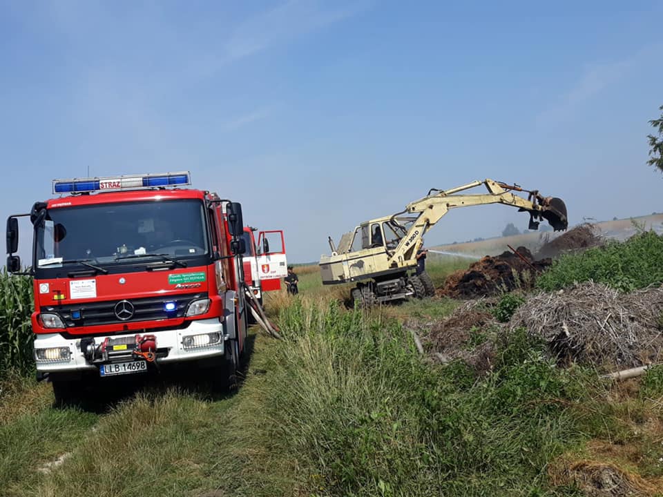 Straż pożarna otrzymała zgłoszenie o 8.21. W akcji gaśniczej brały udział zastępy JRG Lubartów, OSP KSRG Nowy Uścimów, OSP Ostrów Lubelski, OSP Krasne, OSP Maśluchy, koparka z Urzędu Gminy w Uścimowie.