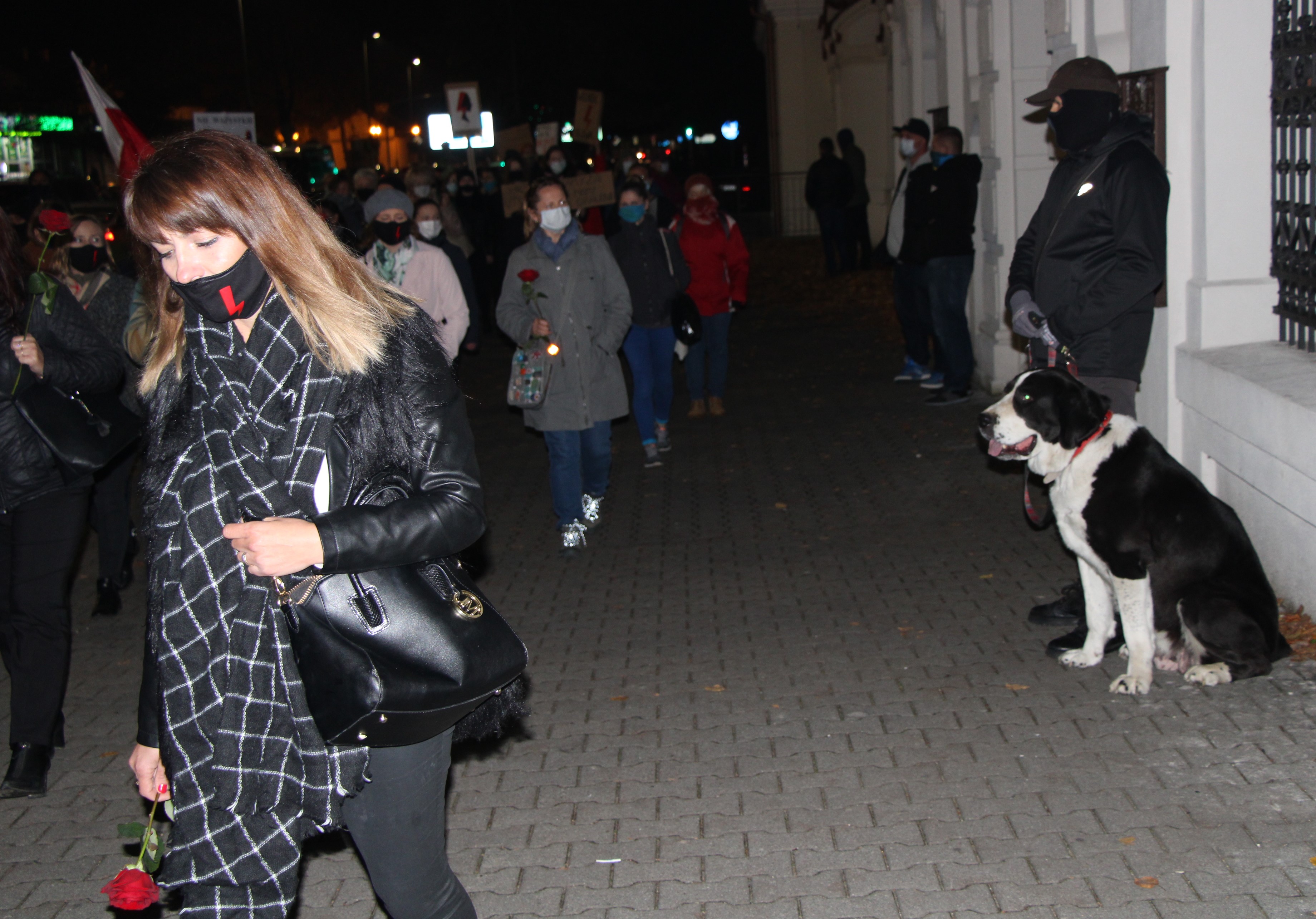 Uczestnicy pochodu zapalili znicze pod starostwem i przeszli pod Urząd Miasta. Gdy mijali kościół św. Anny, stało pod nim trzech młodych mężczyzn, jeden z nich z dużym psem