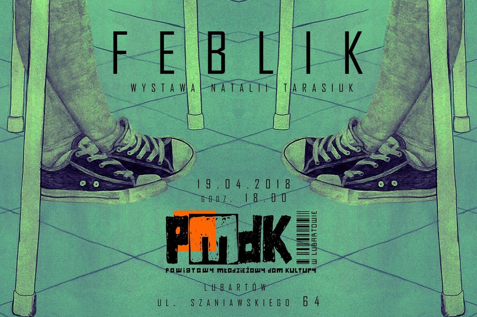 Natalia Tarasiuk - od 2015 r. jest studentką Wydziału Artystycznego UMCS w Lublinie, kierunek: grafika, specjalność: sztuki mediów cyfrowych. Brała udział w wystawach zbiorowych. Wystawa "Feblik" w PMDk w Lubartowie będzie pierwszą wystawą indywidualną młodej artystki.