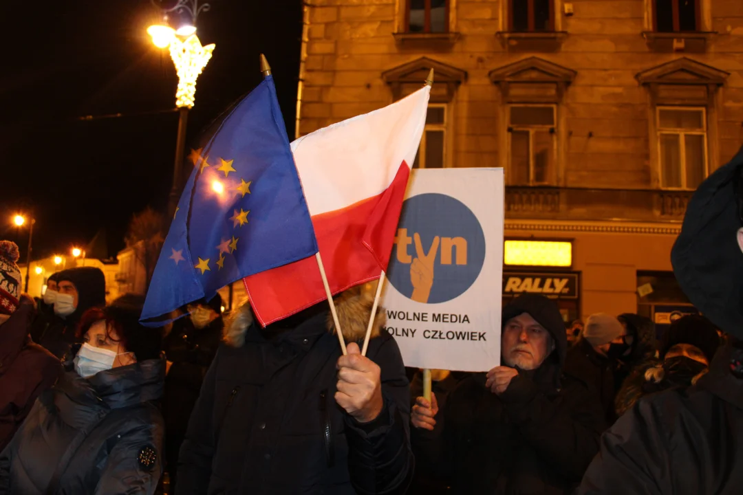 - Dzisiejszy protest nie jest tylko protestem w walce o telewizję TVN. To jest protest w walce o konstytucyjność i podstawową zasadę wolności mediów. To jest protest, w którym walczymy, żeby każdy, nawet ten nieprzychylny rządowi, mógł w telewizji niezależnej od rządu wypowiedzieć się i ten rząd skrytykować - dodawał Jakub Karpiński, przewodniczący Federacji Młodych Socjaldemokratów w województwie lubelskim.