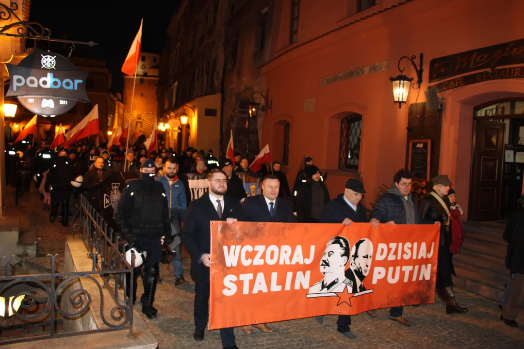- Jak co roku maszerujemy, żeby upamiętnić tych, którzy oddali za nas życie, abyśmy my dziś mogli żyć w wolnym kraju - podkreślał Rafał Mekler z Ruchu Narodowego w Lublinie, który nawiązał też do wojny w Ukrainie. - Jakich etykiet używają Rosjanie wobec swoich wrogów? Faszyści, naziści. Czyż nie tych samych etykiet używano wobec Żołnierzy Wyklętych? To jest cały czas ta sama narracja, cały czas ta sama retoryka (...). Dziś historia zatacza koło. Na przykładzie Ukrainy widzimy, że Żołnierze Wyklęci mieli rację, walczyli w słusznej sprawie. Dziś i tutaj jesteśmy przeciwko tym samym reżimom, temu samemu złu.