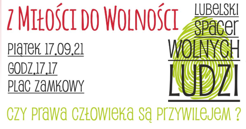 "Lubelski Spacer Wolnych Ludzi - Z Miłości do Wolności” to oddolne wydarzenie, organizowane przez mieszkańców Lublina. Zaznaczają oni, że są przywiązani do praw człowieka, praw konstytucyjnych oraz praw pacjenta, praw przynależnych z natury, dających wolność osobistą, czyli fundamentalnego prawa jednostki do decydowania o sobie, swoim ciele i swoich najbliższych, z poszanowaniem indywidualnej godności innych współobywateli.